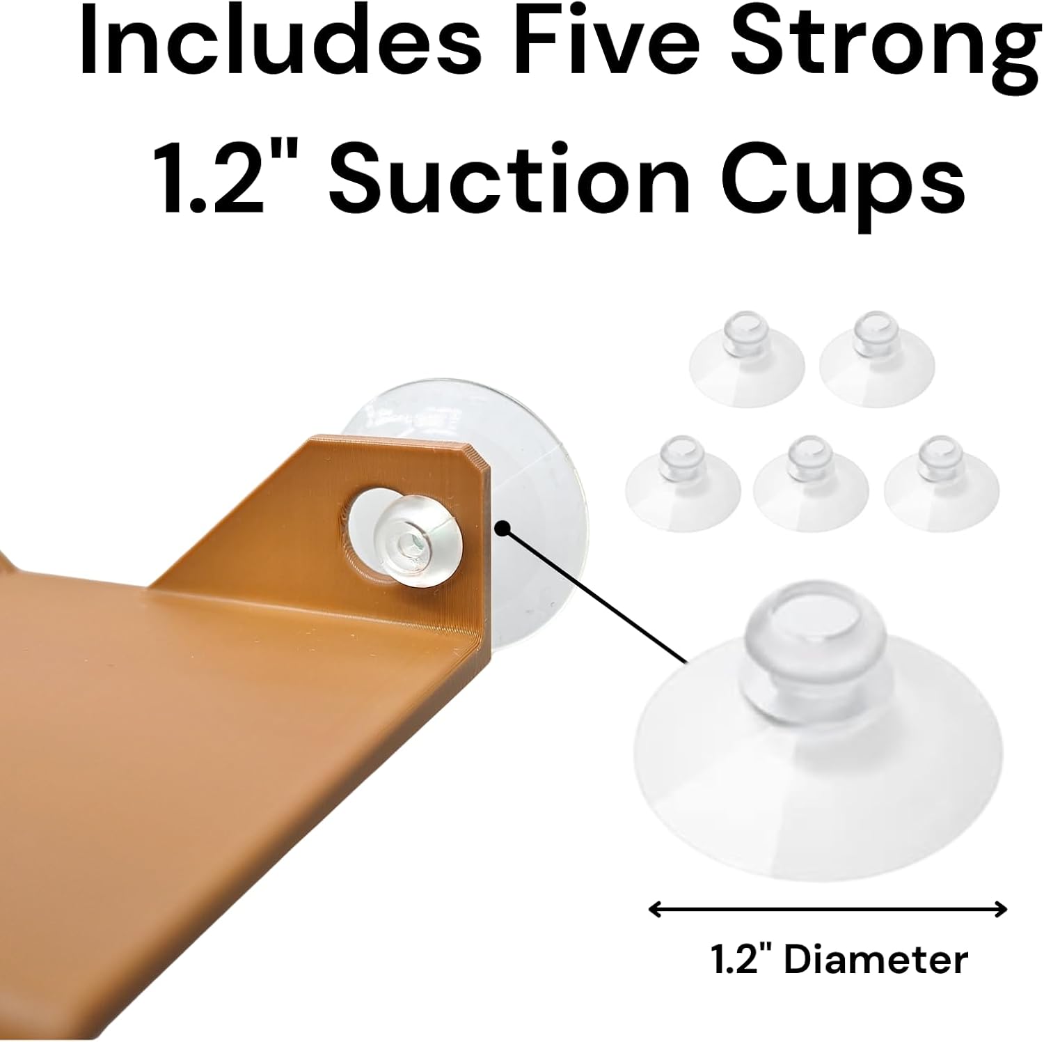 When placed four suction cups make the climbing wall stay in place. To ensure the best stick the wall should be cleaned and suction cups should be moistened prior to placement. The Hermit Crab Climbing Wall Foraging Cave comes in 3 pieces: the ladder, the cave and 5 suction cups. The ladder easily slides over the front of the cave and the suction cups slide into holes on the frontside of the cave.