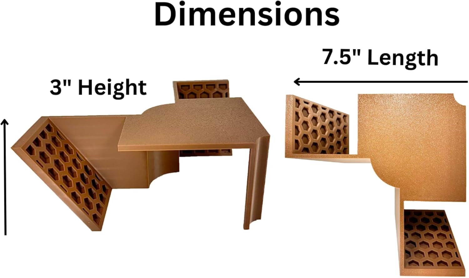 Introducing the Hermit Crab Underground Cave Corner! This hermit crab toy gives crabs a fun new place to climb, explore, burrow, and hideout. The design makes for a great addition to any hermit crab habitat by not taking extra room and adding another level to the hermit crabs environment. While being a fun place for hermit crabs to climb and play on it also is a great place for them to retreat underneath. Hermit Crabs are natually curious and need places to explore and hide. The Hermit Crab Underground Cave Corner will fullfill this need by adding enrichment to the hermit crab tank! The design allows for a great viewing experience as when a hermit crab is underneath you can view inside from the open corners. The hermit crab hide is made with safe plastic and will not cause harm to hermit crabs.