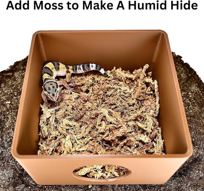 Introducing the Reptile Leopard Gecko Humid Hide! This cave gives reptiles a fun new place to climb, explore, burrow, curl up in and hideout. While being a fun place for reptiles to climb and play on it also is a great place for them to retreat underneath. Reptiles are natually curious and need places to explore and hide. The Reptile Cave will fullfill this need by adding enrichment to any snake or gecko tank! This reptile cave is the ideal environment for your small reptile companions with this specialized humid hide. This Cave will offer your reptile the ability to regulate their humidity levels, promoting healthy shedding, facilitating egg laying, and increasing their comfort. This hide is perfect for many different reptiles; Anoles, Crested Geckos, Leopard Geckos, Snakes, Lizards and much more! The Reptile Humid Hide is made with safe plastic and will not cause harm to reptiles.